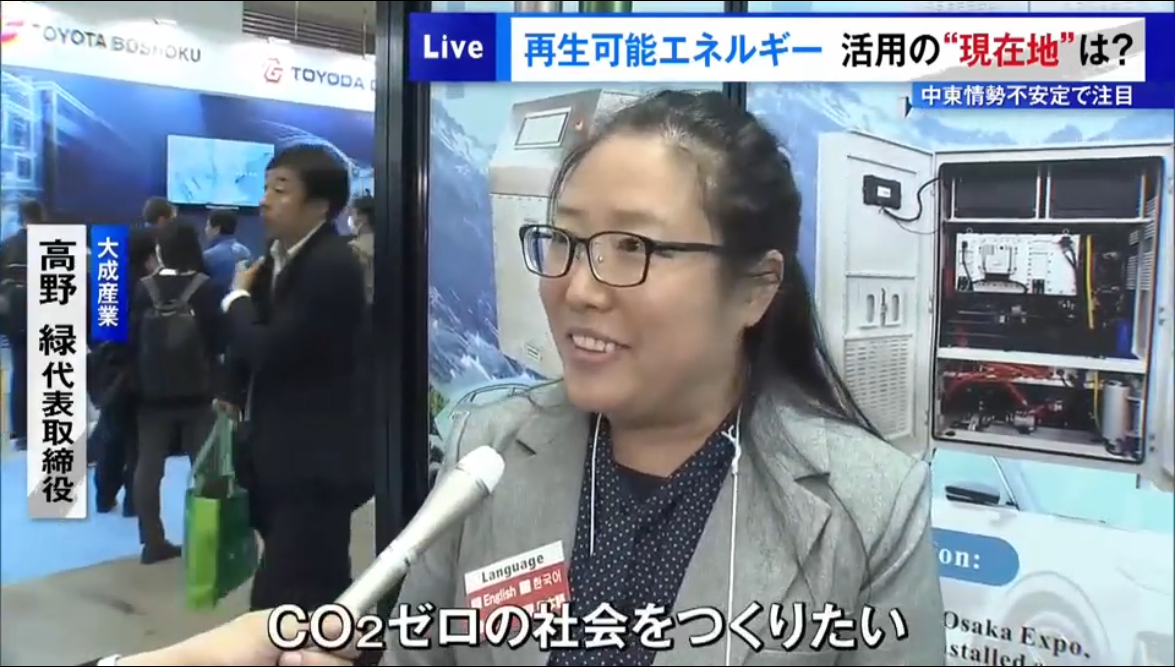 大成産業社長在接受采访时表示:「我们的技術を利用し、日本の脱炭素化に貢献できればと考えています。如果能在家庭生活中减少CO2排出またはゼロ排放を実現できれば、カーボンニュートラル目標の実現に大いに役立ちます。我们的愿景是创造一个CO2为零の社会です。」